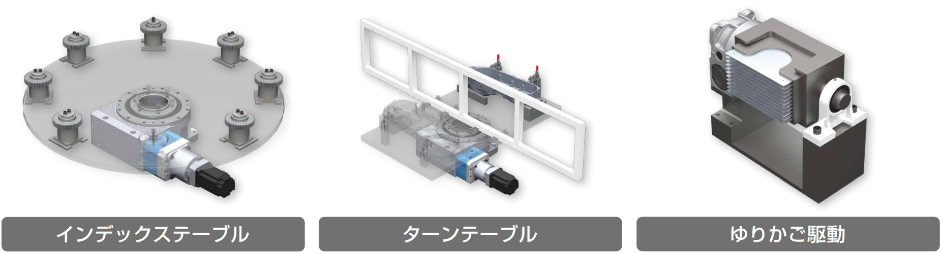 バックラッシがなく高剛性、更にセンサレス設計が可能なので重量物の高精度位置決め装置におすすめします。