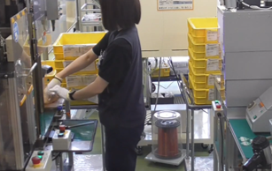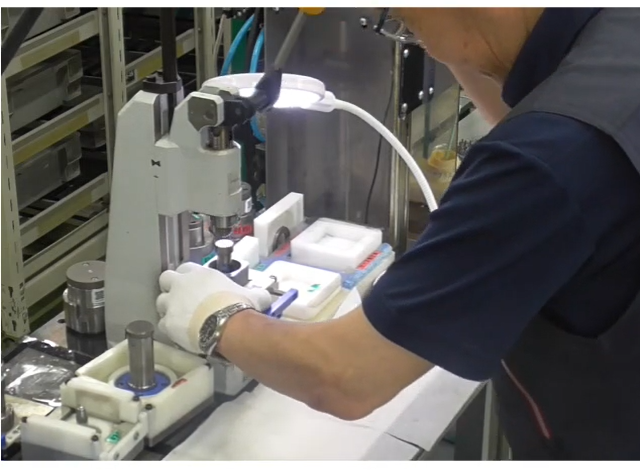 | ベアリング圧入工程 プッシュメカで圧入中に梱包作業 |