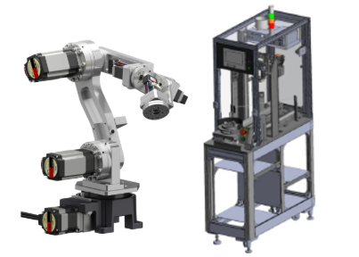 セミカスタム装置では、ロボットやプッシュメカなどの標準装置を組み合わせることで、短納期で装置を提供することができます。