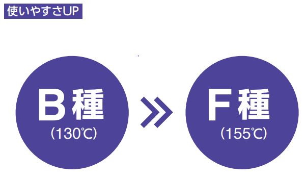 モータの耐熱クラスをB種(130℃)→F種(155℃)に強化しました。