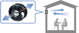 1台のファンで両方向に送風するリバーシブル フローファンです。1台で風向を切り替えられま す。風向がどちらでも,ほぼ同じ風量,静圧で す。 ![]() |
