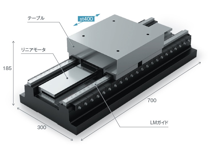 テーブルを厚くすることでLMガイドの姿勢変化による真直 度、位置決め精度への影響を少なくした、高精度1軸ユニ ットです。また、姿勢変化が極小になる様に解析・専用 設計されたLMガイドを使用しています。 |