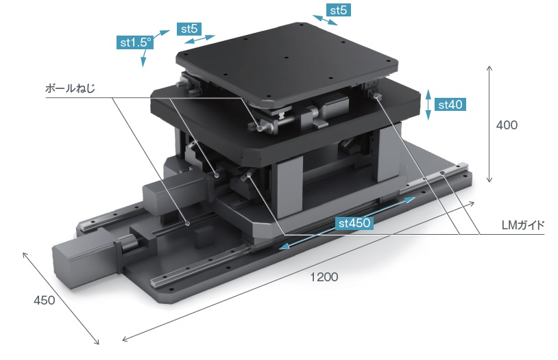 ボールねじ駆動のZ軸昇降ユニットです。テーブルの両端 をLMガイドで支持する構造を採用しています。両端を支え ることで高い剛性を実現しています。 |