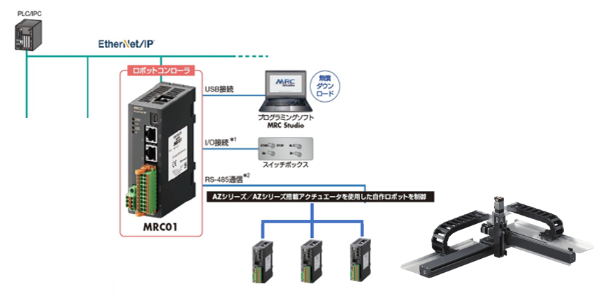 ロボットコントローラMRC01との組み合わせで簡単にセットアップ・プログラムできます。(デフォルトの一例)