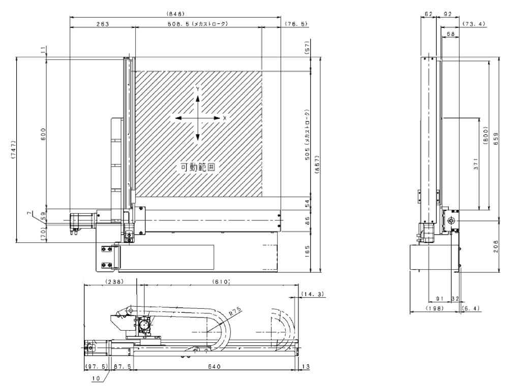 ストローク :X×Y×Z=500×500×100 (単位:mm)