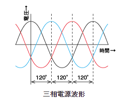 三相電源でモータを運転する場合には、進相コンデンサは不要です。 これは、三相電源があらかじめ位相のずれた波形を持っているからです。