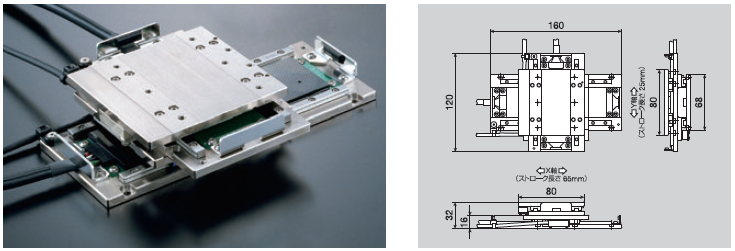 直線移動用のXテーブルと、回転位置決め部であるθテーブルを基本構成としてラインナップ。