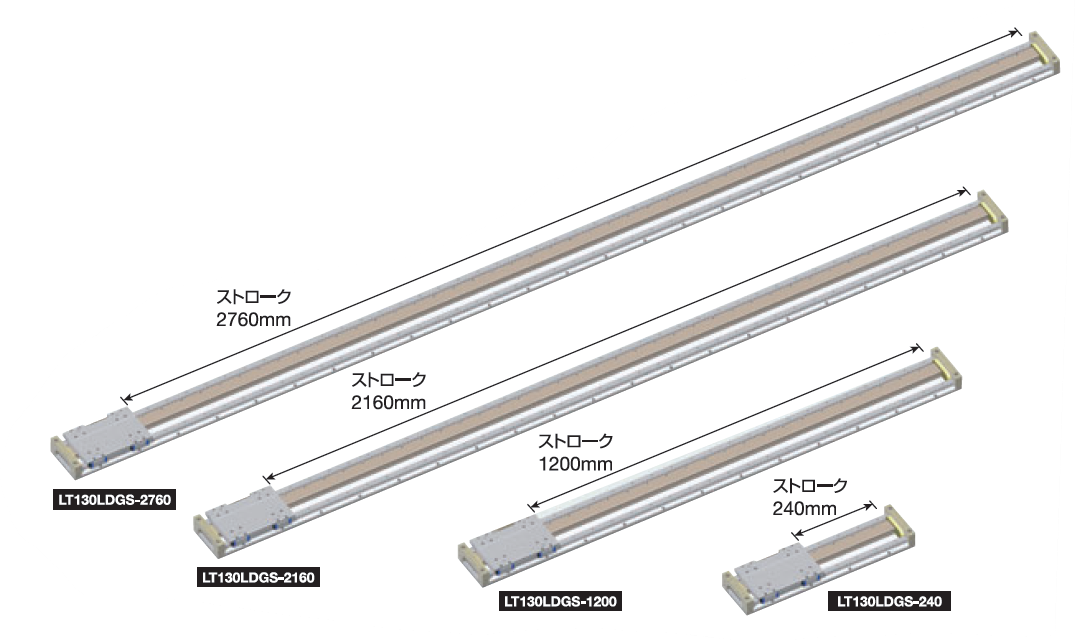 つなぎ仕様トラックレールのCルーブリニアウェイEを採用し、リニアモータ駆動ならではの最大2760mmのロングストロークを実現しました。