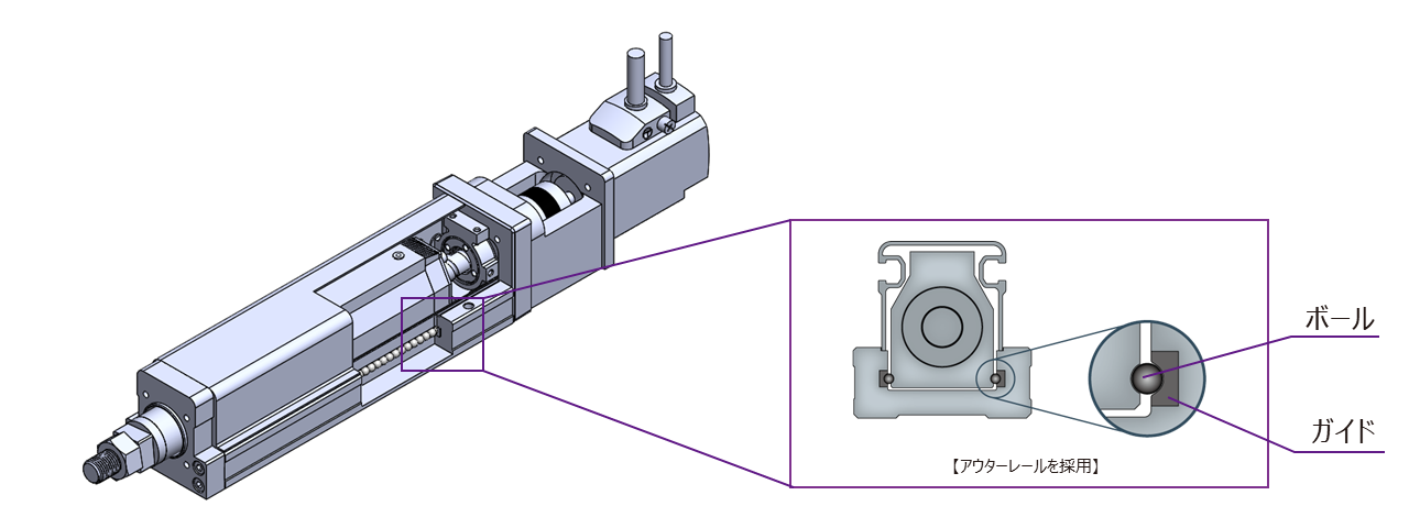 EBR-Lシリーズはボディと一体になった幅広ガイド「アウターレール」を採用しています。