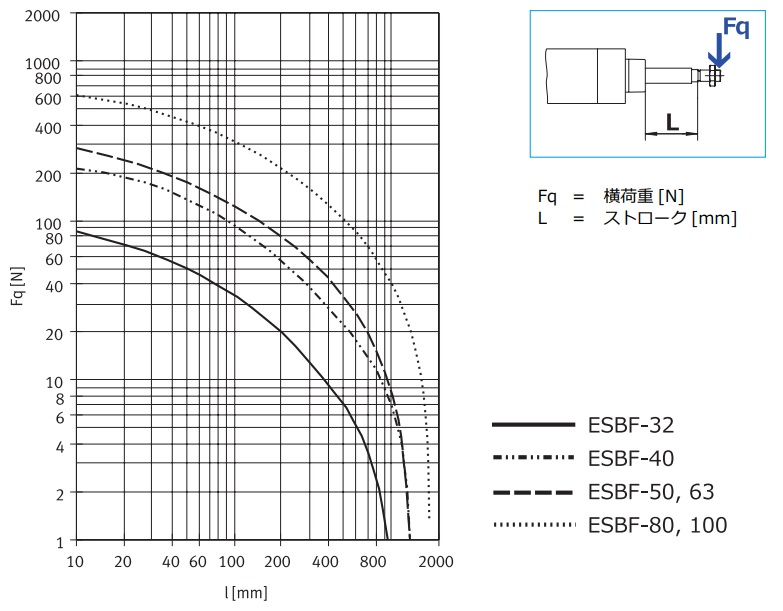 サイズ 32 40 50 63 80 100 定格推力[N] 200 1,000 2,000 6,750 7,800 14,800 最大推力[N] 800 3,000 5,000 7,000 12,000 17,000