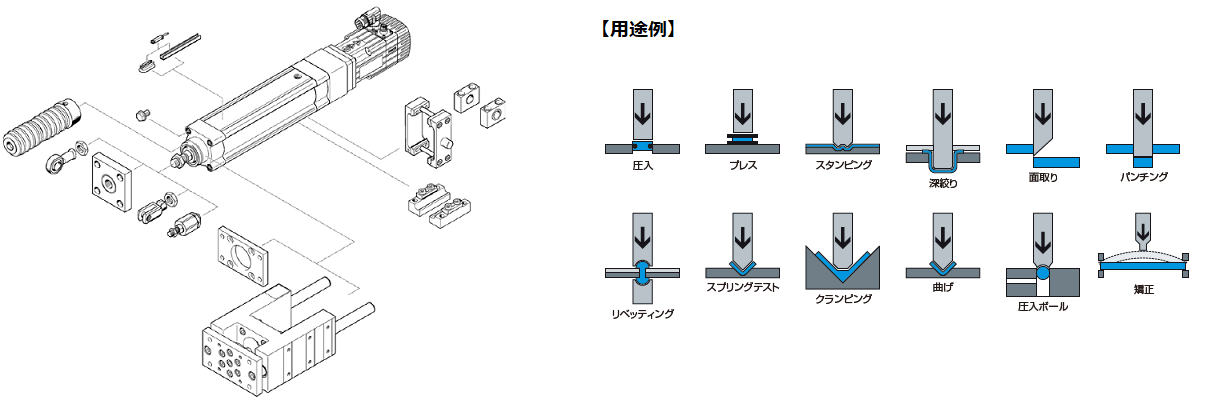 三品業界をはじめとする省人化に向けて、圧入工程で必要な推力が出せる電動スライダをお選びください。