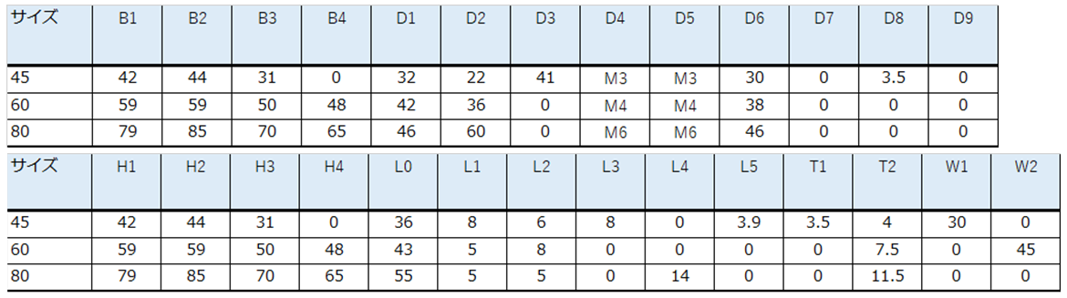 | サイズ | スライダ+モータ品番 | ストローク | 最高速度 | 最大可搬質量 | プーリー径 |