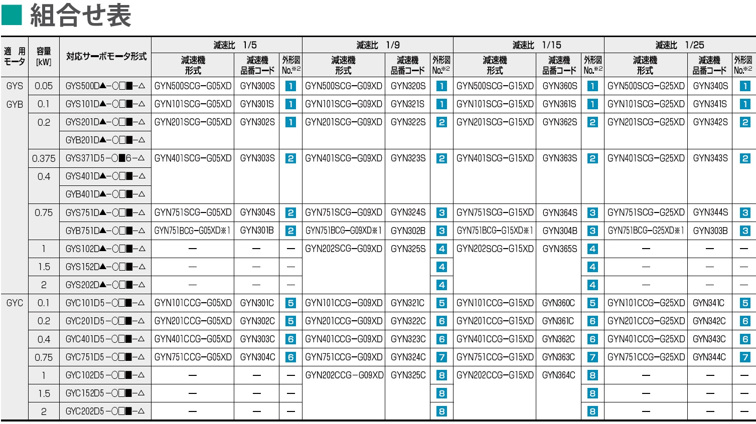 11種類 0.05~5.0kW □40 0.05/0.1kW □60 0.2/0.4kW □80 0.75kW □100 1.0/1.5/2.0kW □130 3.0/4.0/5.0kW |
