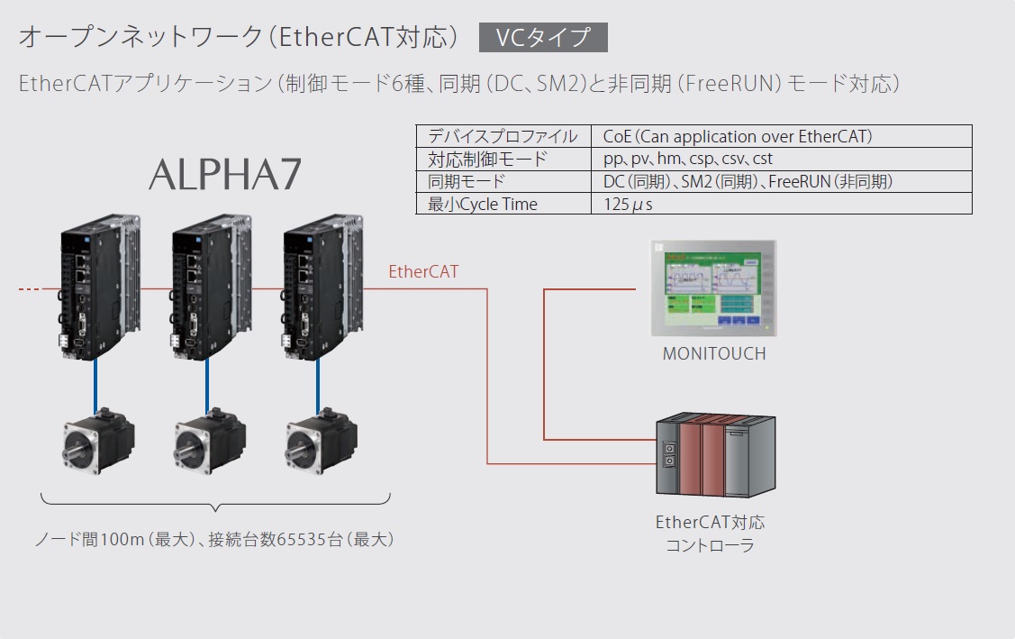 | オープンネットワーク | VCタイプ | EtherCAT | ● | ● | ● | 単相または 三相AC200〜240V |