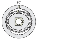 サーキュラ・スプラインを固定し、ウェーブ・ジェネレータ (入力)を時計方向へ回すと、フレクスプラインは弾性変形し、 サーキュラ・スプラインとの歯の噛み合い位置が順次移動して いきます。 |