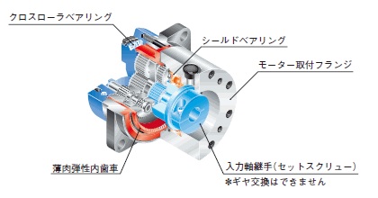 (ウェーブ・ジェネレータ、フレクスプライン、サーキュラ・スプライン)から構成されています。