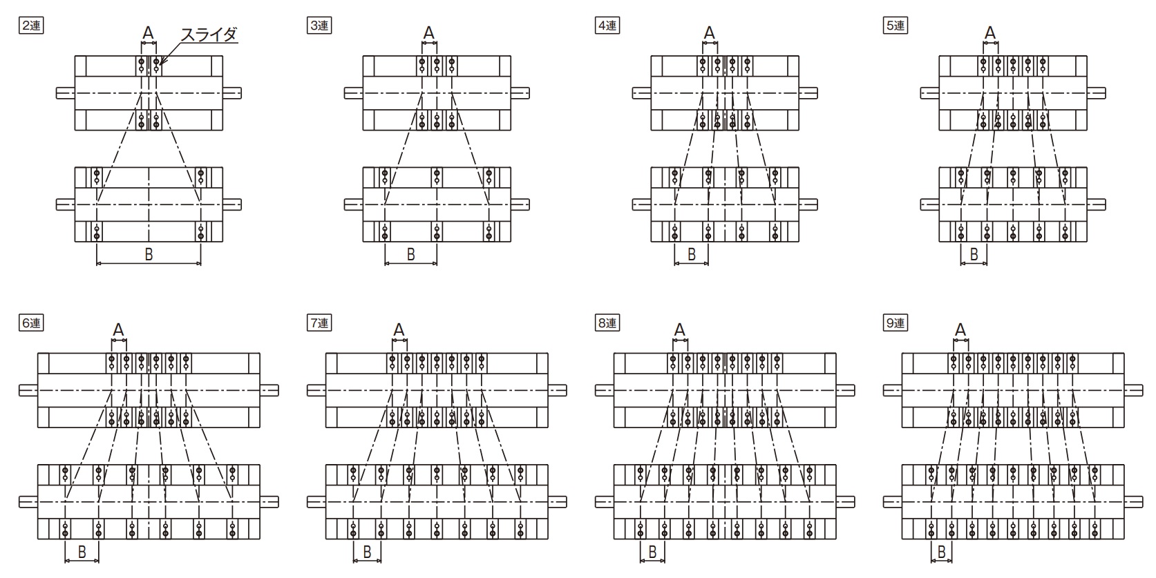 | スライダ連数 | 2 | 3 | 4 | 5 | 6 | 7 | 8 | 9 |