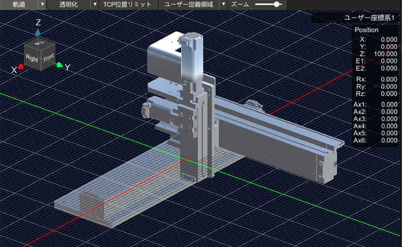 3D グラフィック上で、実機を動かさずに動作を確認することが可能です。※ シミュレーションと実機の動作は差異が生じる可能性があります。