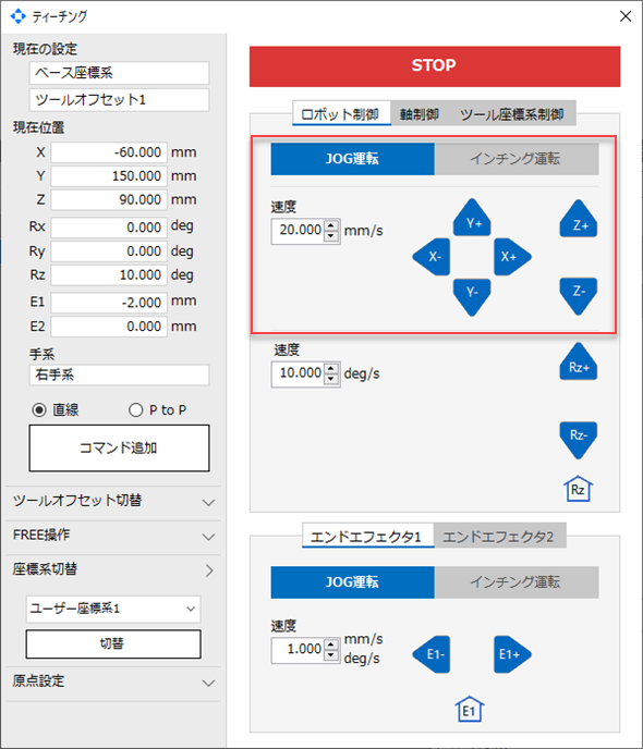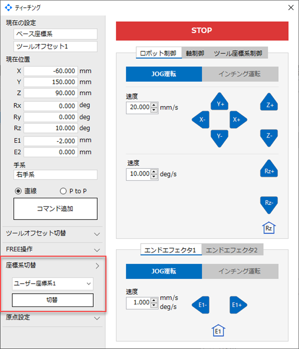 任意の位置を3つまで原点に設定することができます。設定はMRC Studioのティーチング画面からおこないます。