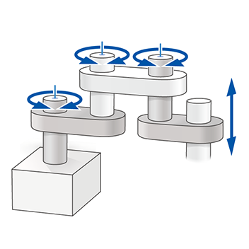 3リンク 先端軸昇降 3リンク ベース軸旋回+Rz軸 2リンク機構 ベース軸直動+Rz軸 パラレルリンク+Rz軸 直交 小型ロボットOVR