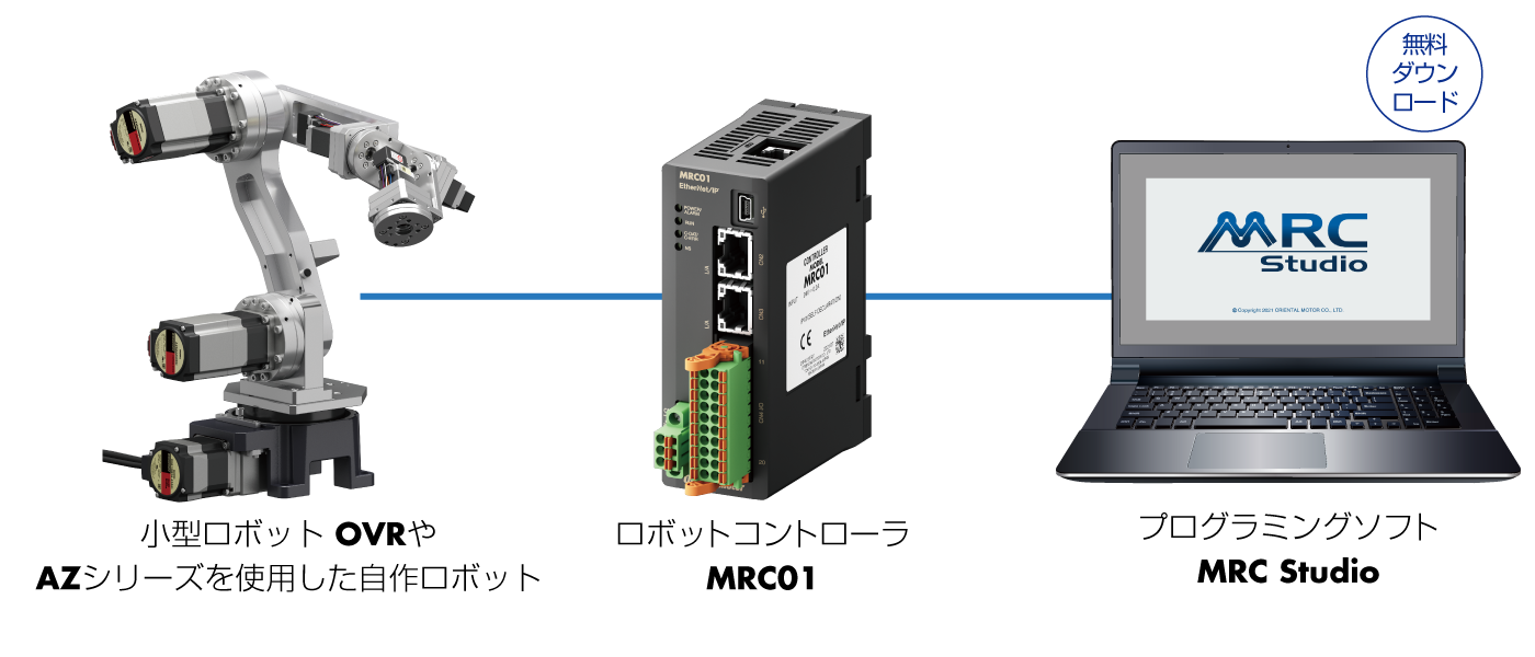※2 MRC01とAZシリーズのドライバ間は、RS-485通信で制御しています。ロボットコントローラ MRC01とプログラミングソフト MRC Studioでかんたんセットアップ