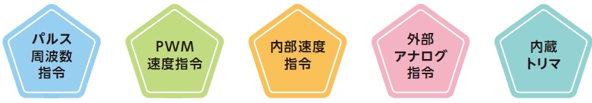 屋外現場や建屋間で稼働するアプリケーションにもご利用いただけます。 5種類の速度指令方法が選択できます。