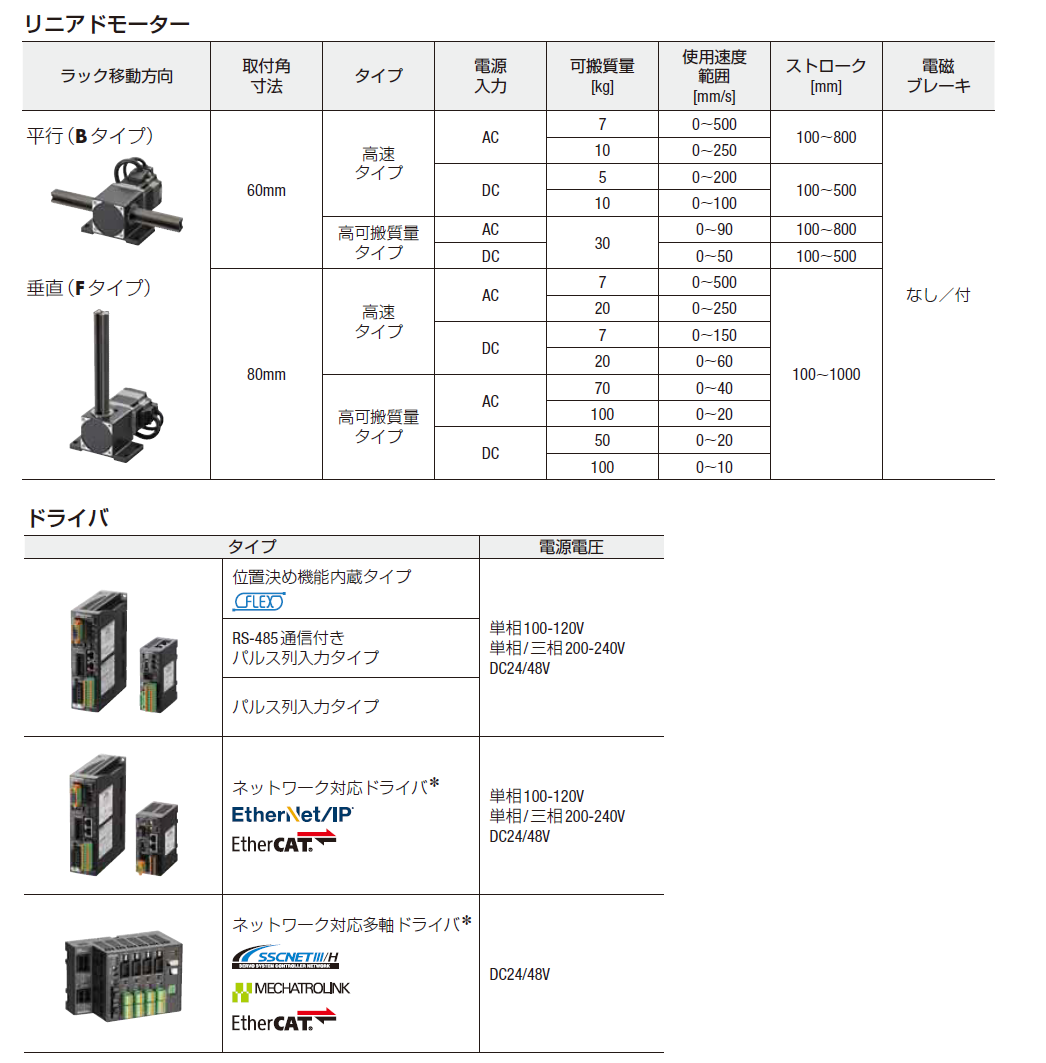 *DC電源入力 取付角寸法80㎜高可搬質量タイプ ストローク1000㎜のリニアドモータは、