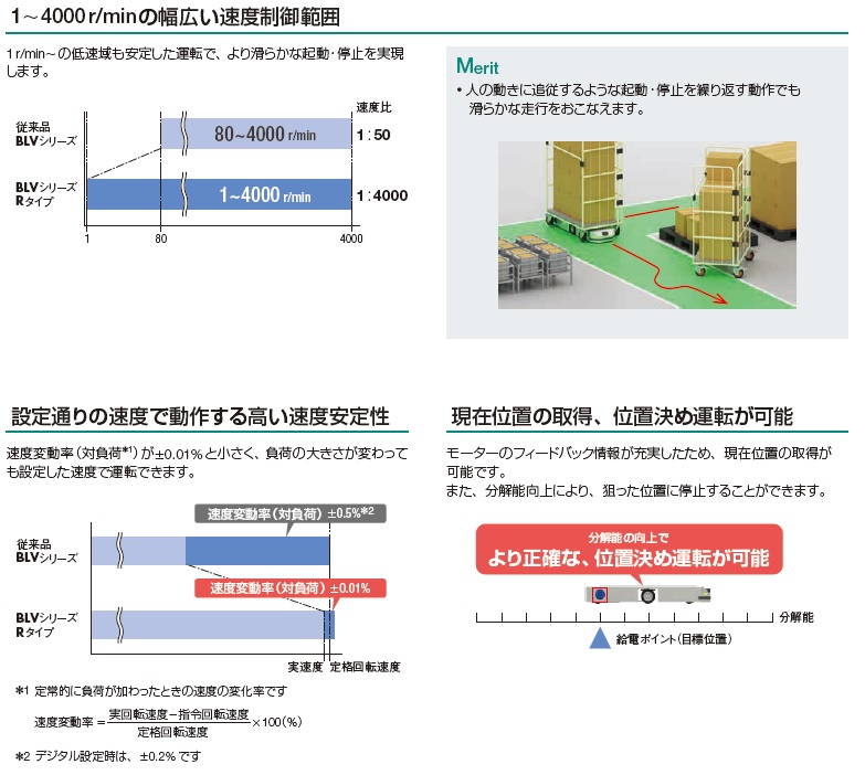 1r/minからの低速運転が設定可能で、滑らかな駆動を実現します。