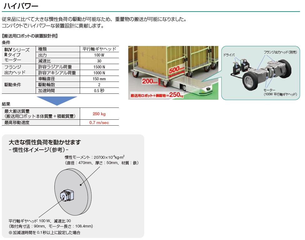 モータ(ギヤヘッド)と組み合わせることで許容ラジアル荷重、許容アキシアル荷重を大幅にアップするため、ギヤヘッド単独よりも大きな荷重を受けることができます。