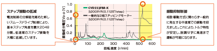 フルデジタル制御のフルタイムマイクロステップ駆動によって振動レベルを大幅に改善し、全速度域で低振動化を実現しました。