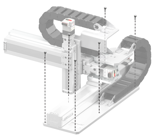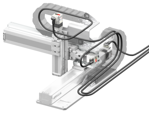 電動スライダ、取付ブラケット、ケーブルホルダで構成した3軸直交ロボットです。組立状態でお届けします。