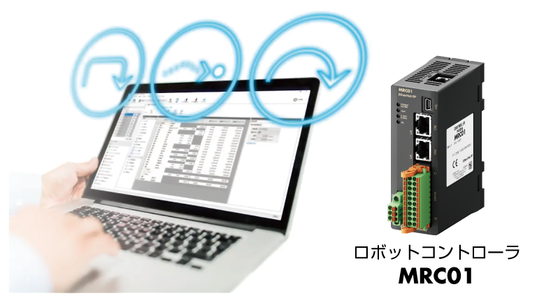 直感操作可能なロボットコントローラMRC01から制御することで、多軸ロボットによる自動化を少ない負担で実現できます。