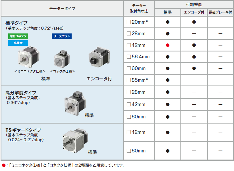 です。また、マイクロステップ駆動のドライバで制御することでさらに低振動・低騒音駆動が可能です。