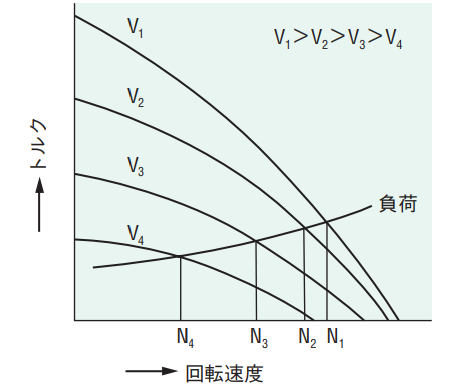 モータのトルクは印加する電圧の二乗に比例して変化します。そのため、負荷や印加電圧が変化すると回転速度も変わります。