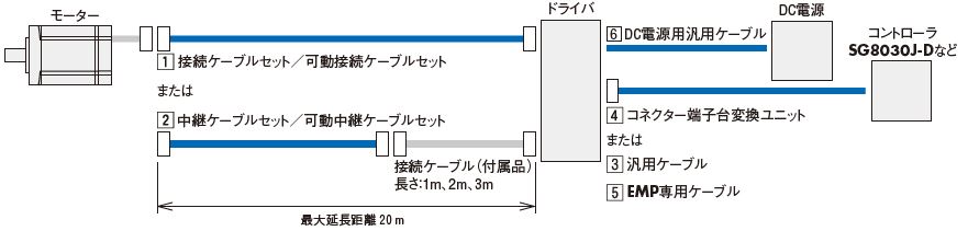 ご注意:モーターとドライバ間の最大延長距離は20mです