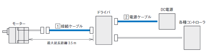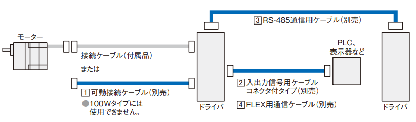 ご注意:100Wタイプには使用できません。モーターケーブルを直接ドライバに接続することができないため、必ず接続ケーブル(付属)を使って接続してください。