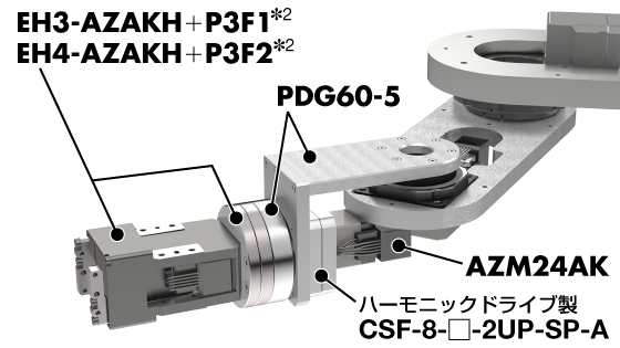 ※2 電動グリッパ EHシリーズと組み合わせる場合は、ロボット用取付フランジP3F1(EH3-AZAKH用)、P3F2(EH4-AZAKH用)を別途ご購入ください。