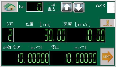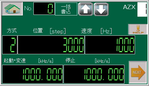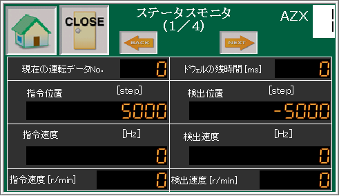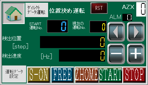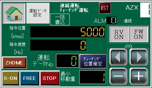 オリエンタルモーター製サーボモータ AZXシリーズを簡単に設定、操作できるタッチパネルです。