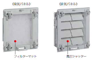 ●換気ファン(別売)は、吸気パネル/排気パネルどちらにでも組付けが可能
