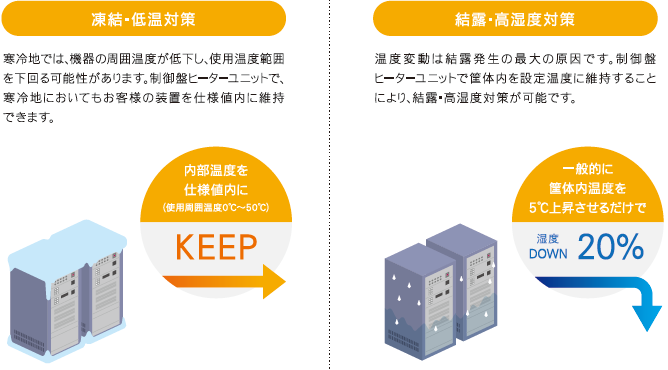 ヒータは温度や湿度が引き起こす、機器・装置のトラブル対策として効果的です ☑クリック