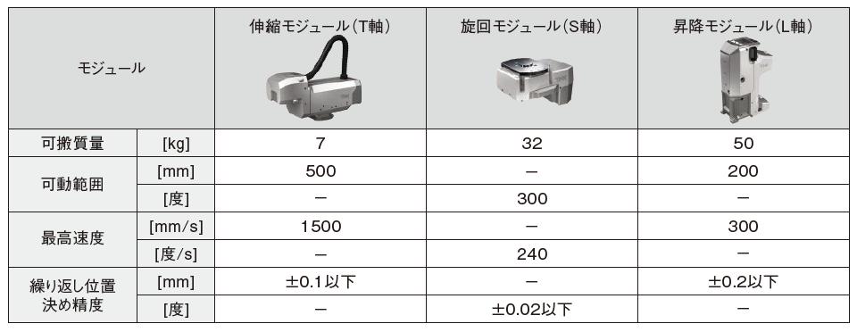 ・各軸をモジュール化(モジュール単位で納品、素早く組立て、素早く導入、素早く復旧)