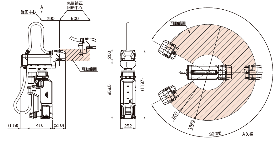 特徴 シンプル機構で広い可動領域