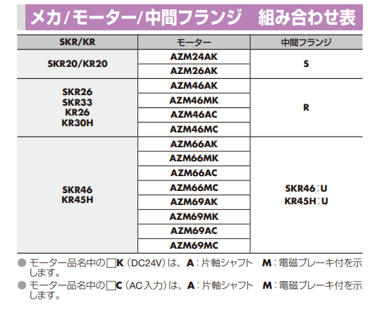 ■メカ/モーター/中間フランジ 組み合わせ(7種類)