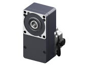 ブラシレス可変速ギアモータ(バッテリー電源タイプ), DC12V, 脚取付, 直交軸, 減速比:80, 軸方向:両方, 軸材質:炭素鋼, 0.1kW, ブレーキ付, 速度範囲:1.3~37r/min, 【ドライバ別売】A-BLCD010L1仕様・外形図