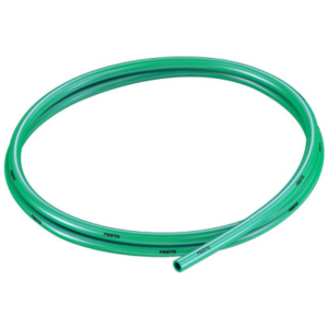 プラスチックチューブ,外径:4mm,内径:2.6mm,最小曲げ半径:8mm,加圧時許容曲げ半径:16mm,質量:0.0085kg/m,カラー:緑,ロット:1巻50mでの販売仕様・外形図