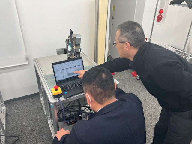 お客様のワークを使った実機テストや、ロボットコントローラのセットアップからプログラミングまでの一連の流れを体験できます。