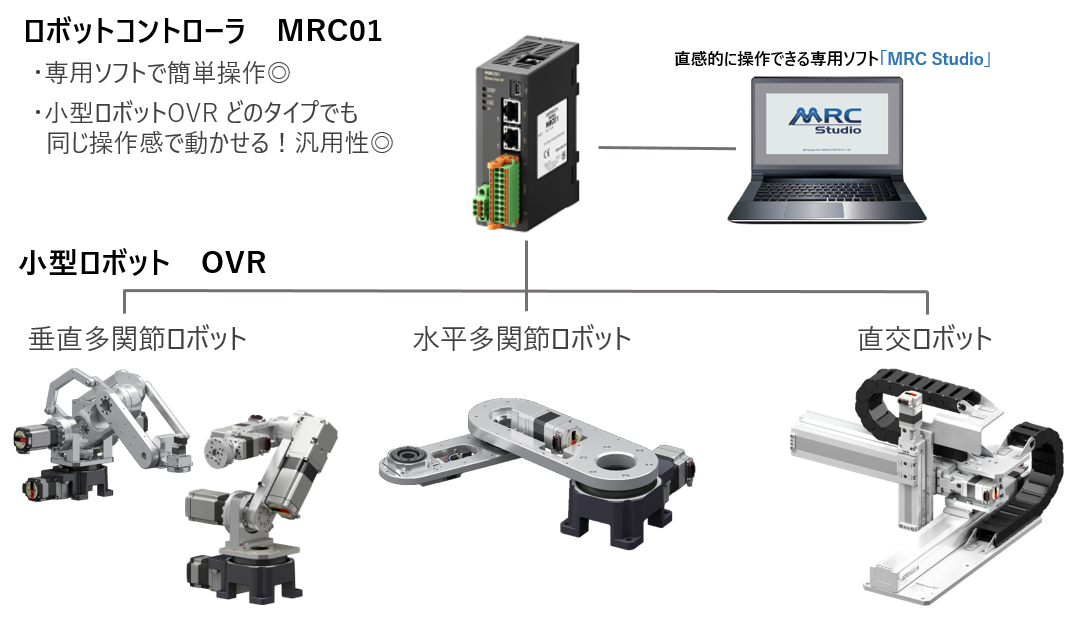 ロボットコントローラMRC01との組み合わせによる簡単操作・汎用性の高さが魅力