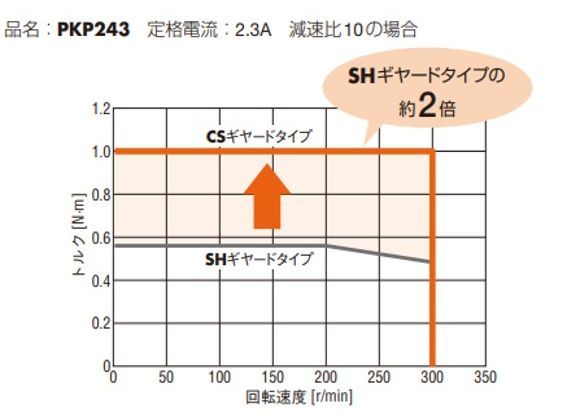 ・高トルク:同サイズの1.7倍のトルクを発揮(当社PKP244タイプ比)