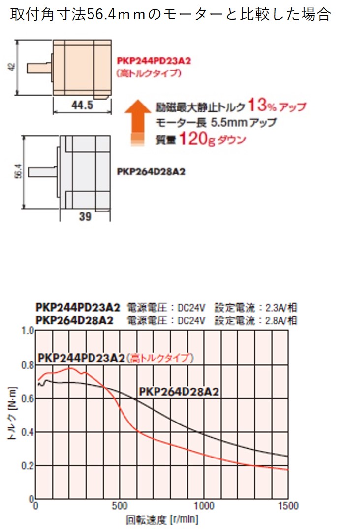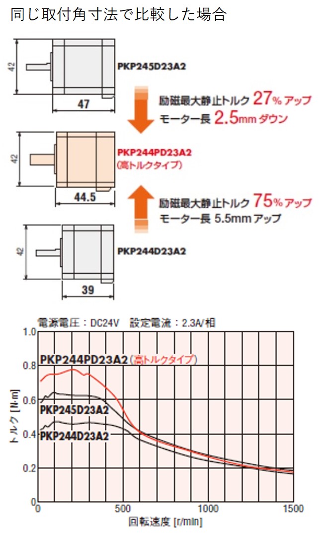 高トルクタイプモータ「型式:PKP244PD23A2」の特徴
