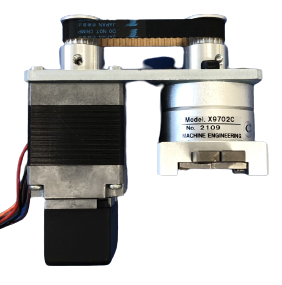 従来のエスケープメントは、2本のシリンダやリンクによる形式が主体でしたが、ここにご紹介する《ESCAPEMENT》は、 たった1つのロータリアクチェータで2本のフィンガを作動する新しい方式です。 フィンガは、内部に組み込まれたローラとロック用カムによって駆動される摺動式ですから、 シリンダの直接使用やリンク式に較べ、強いストッパ保持能力を得ることができるのが大きな特長です。X9702Cは外部入力モデルで、モータによる駆動が可能です(写真はAZM24AKと組み合わせた例です)。